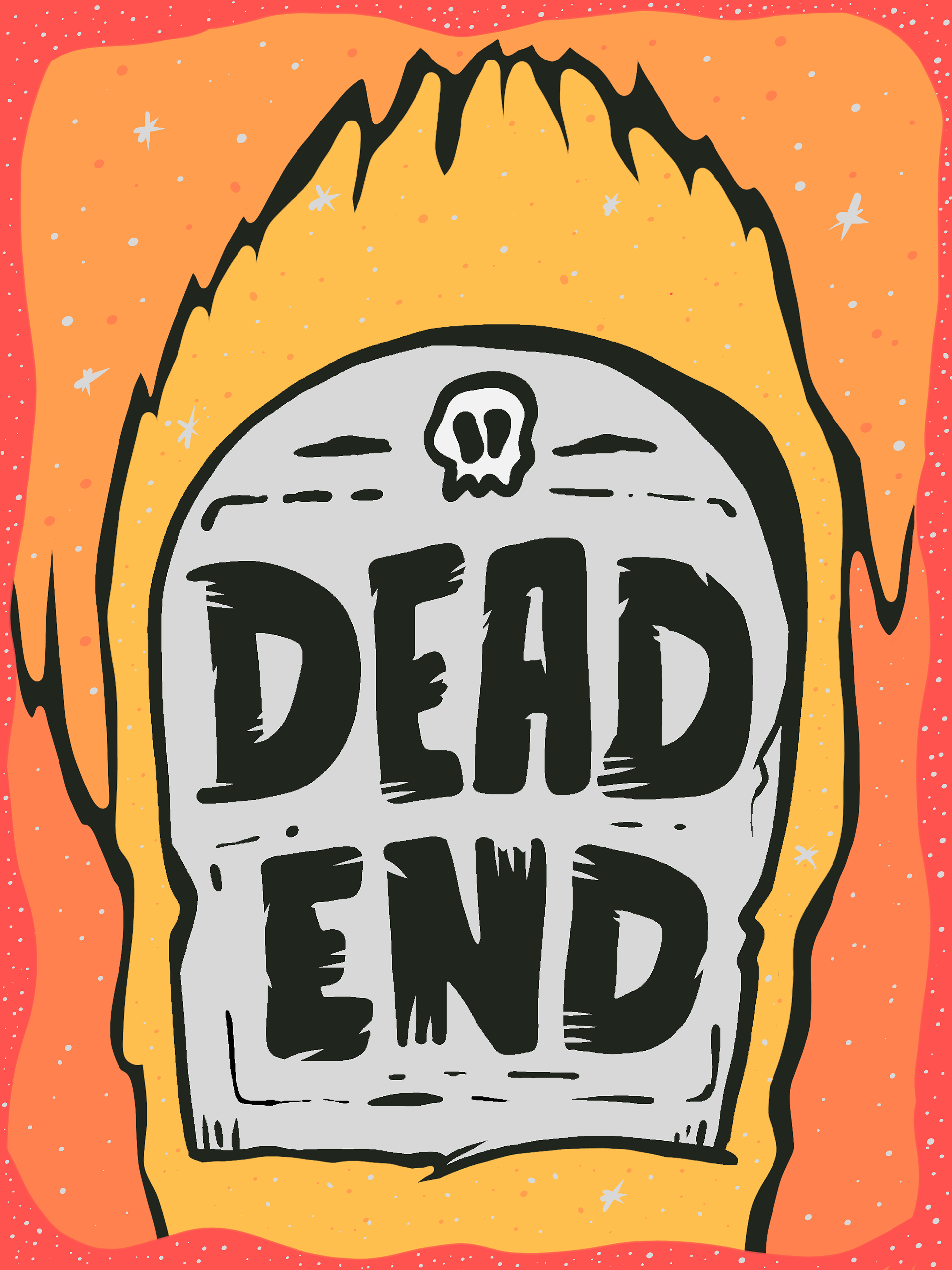 I wanted this piece to feel like a warning you don’t notice until you’re already there. The tombstone reads Dead End, but the melting shape and heat around it suggest movement, pressure, and something still happening even when it’s supposed to be over. I leaned into imperfect lines and bold lettering to keep it human and a little uncomfortable, not polished or resolved. This is about moments where you realize you’ve arrived somewhere final, but your momentum hasn’t caught up yet.
